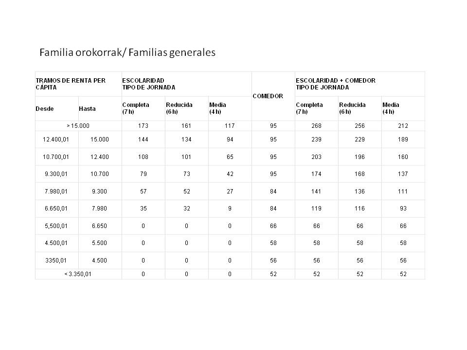 Familia orokorrak / Familias generales